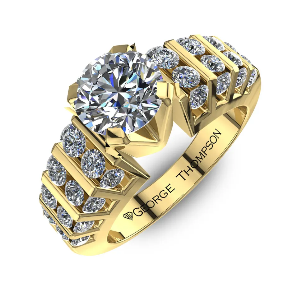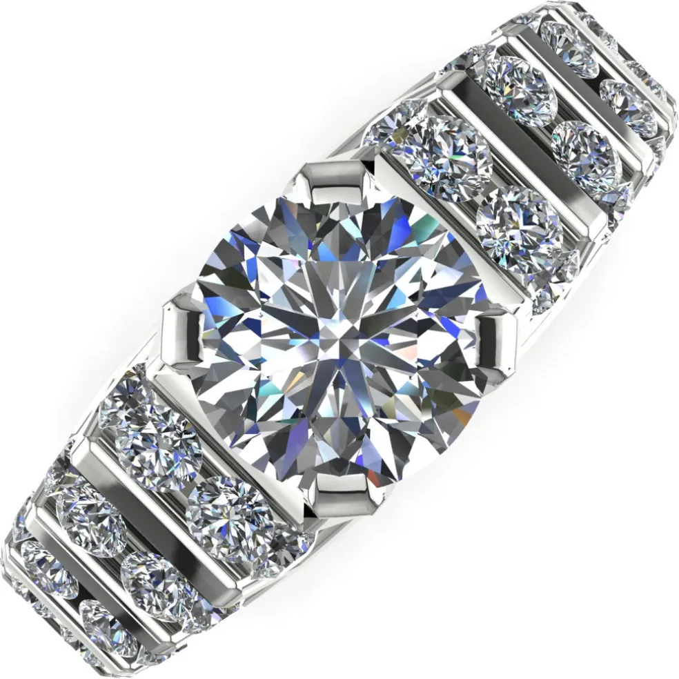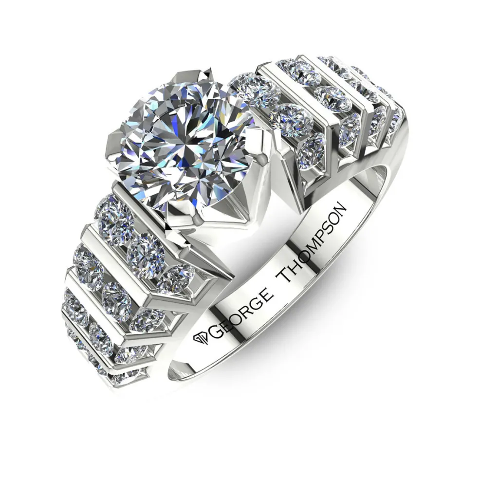 Get ready to shine like a goddess with the Stadia, a dazzling diamond engagement ring that exudes luxury and sophistication. Featuring a center round brilliant diamond of approximately 2/3cts, this ring is adorned with 32 glittering round brilliant accent diamonds, weighing approximately 0.70cts in total. With a total diamond weight of approximately 1.50cts, this ring is a true showstopper.