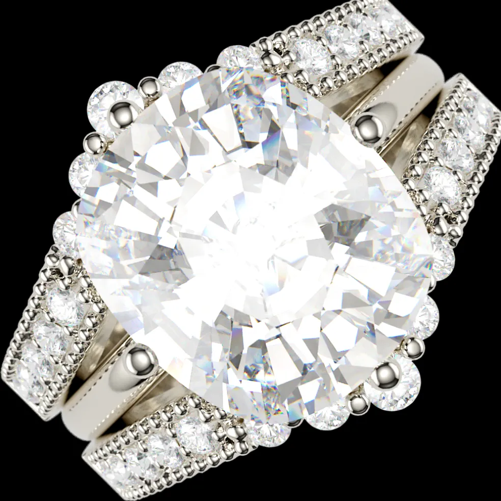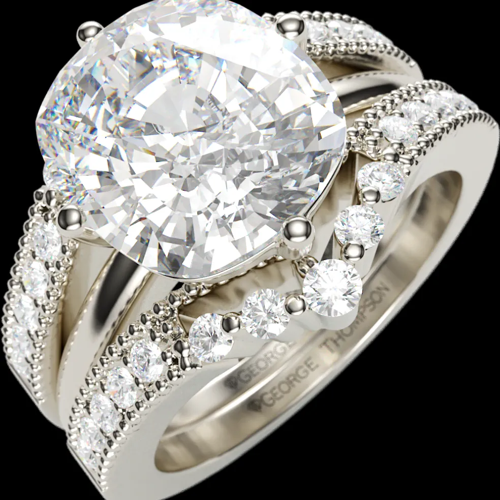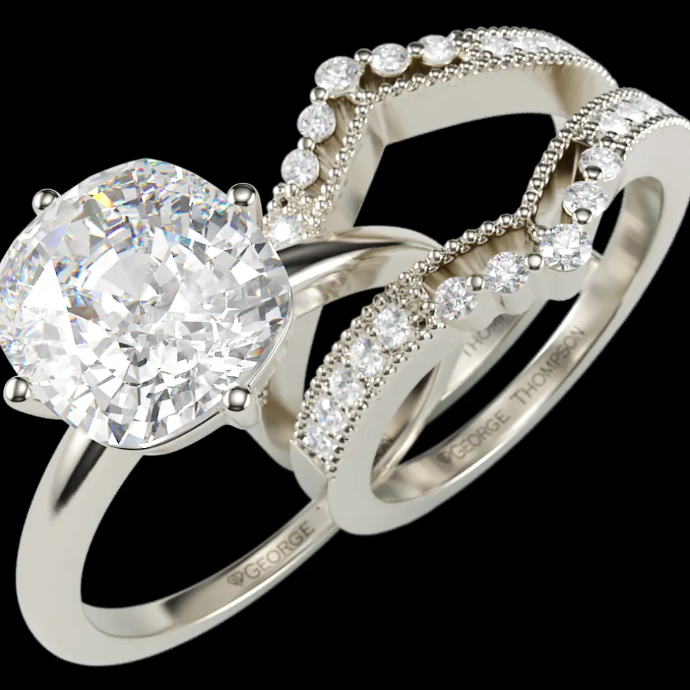 The Stazia’s design is both chic and sophisticated, with diamonds expertly set in a sleek and stylish band that perfectly complements any engagement ring. The diamonds shimmer brilliantly, creating a captivating sparkle that adds a touch of glamour to any outfit.