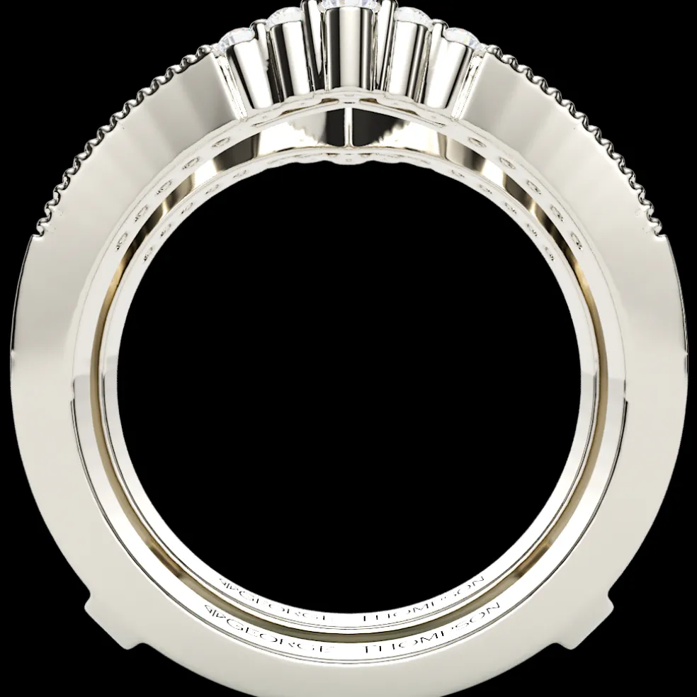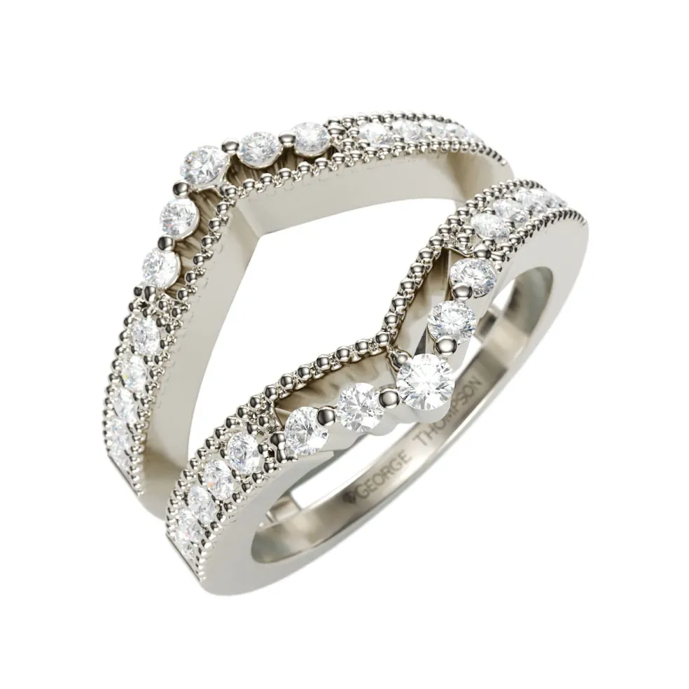 Meet the Stazia, a dazzling ring guard that radiates glamour and luxury. This exquisite piece is crafted with the finest materials, featuring 30 round brilliant diamonds that totally weigh approximately 0.20ct. Set in 14kt white gold, this ring guard has a weight of approximately 5.85 grams, ensuring a comfortable and secure fit. It is also available in Yellow Gold, Rose Gold, Palladium, and Platinum, allowing for customization to suit your unique style and can be made to fit any size.