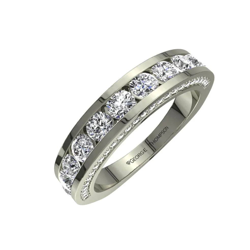Introducing the Tanada band – a stunning and sophisticated accessory that’s perfect for any occasion! Featuring 65 round brilliant accent diamonds with a total weight of approximately 0.85cts, this band is crafted from 14kt white gold. Weighing approximately 4.60 grams, it’s available in multiple precious metals and can be customized to fit any size. Perfect for adding a touch of elegance to any outfit, the Tanada band is a must-have for any jewelry collection.