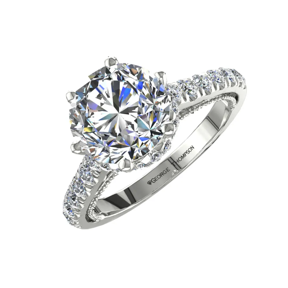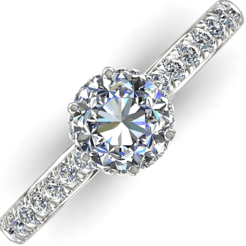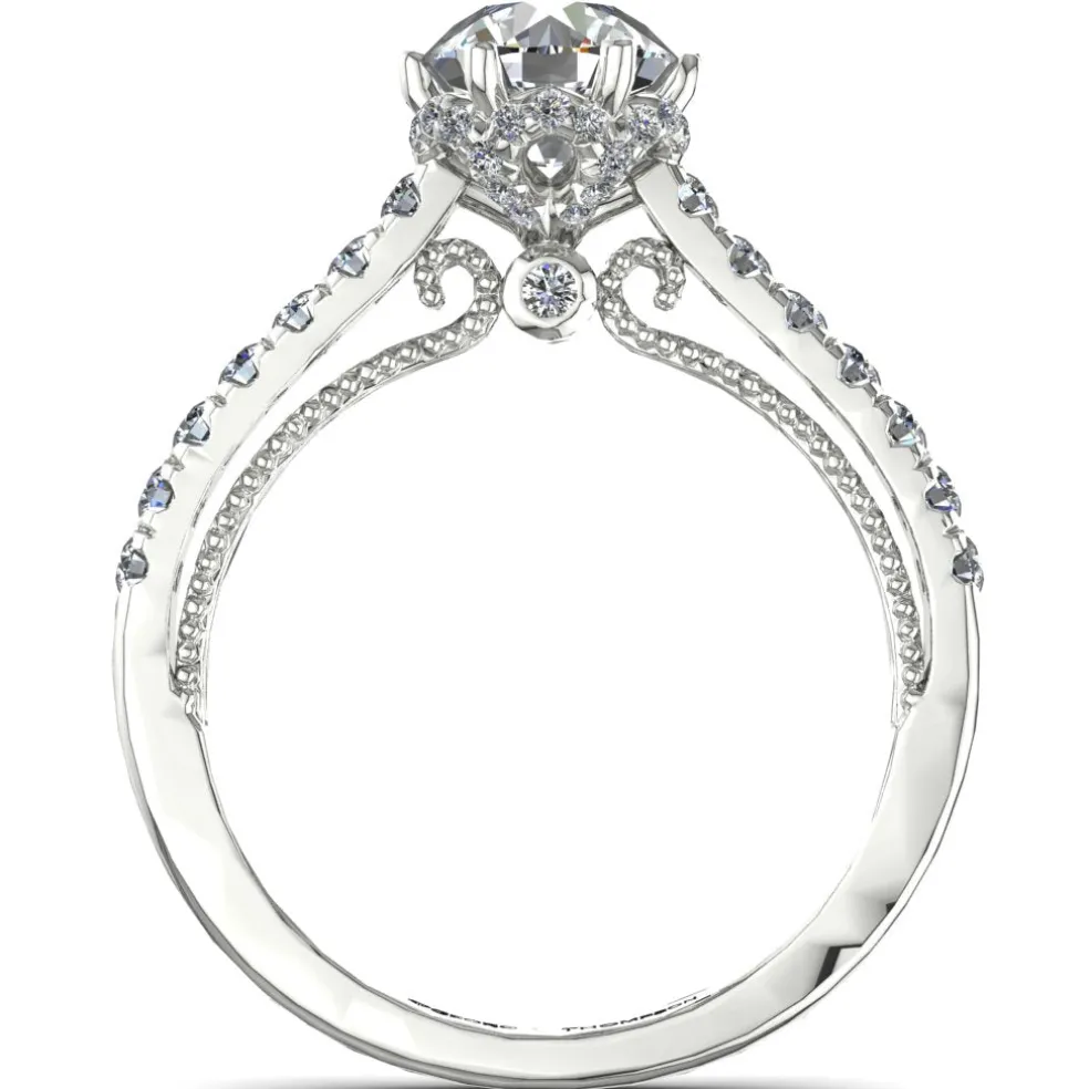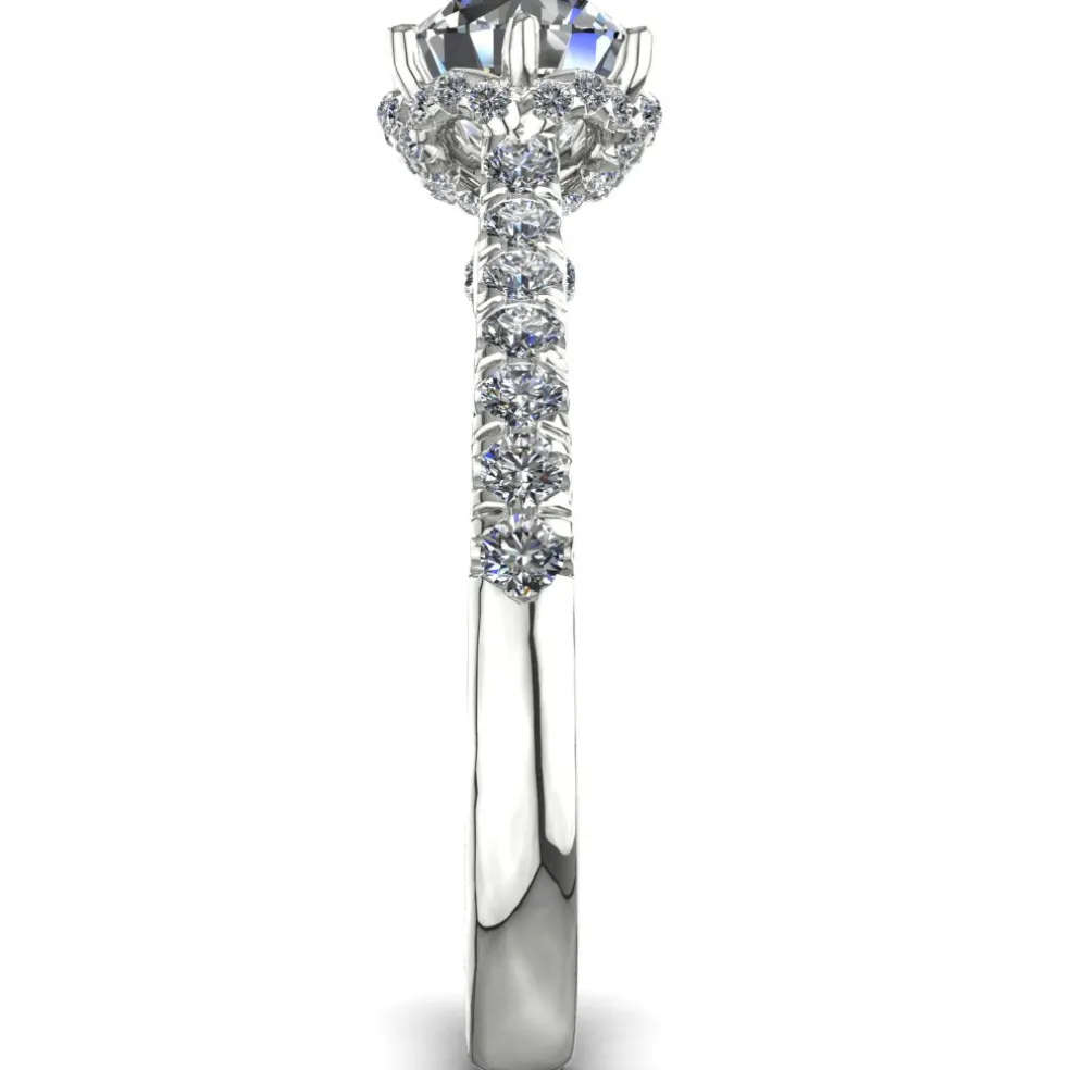 Add some sparkle to your jewelry collection with our White Gold Engagement Ring, featuring a center Round Brilliant Diamond of approximately 0.80ct., 46 Round Brilliant accent diamonds with an approximate total weight of 0.40cts. This ring has a total diamond weight of approximately 1.20cts. This stunning ring boasts an intricate design that catches the eye and draws attention to its shimmering diamonds. Weighing in at approximately 3.15 grams in 14kt white gold, this piece is both lightweight and durable, perfect for everyday wear.