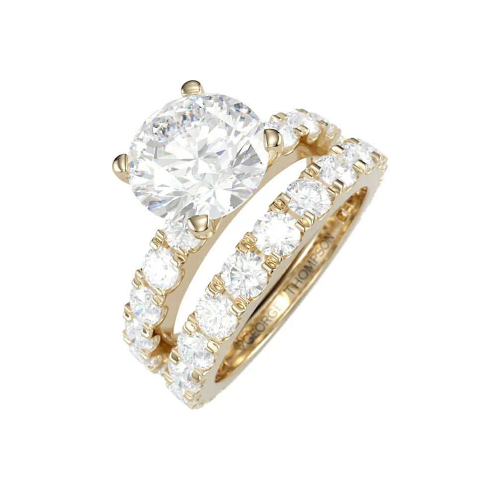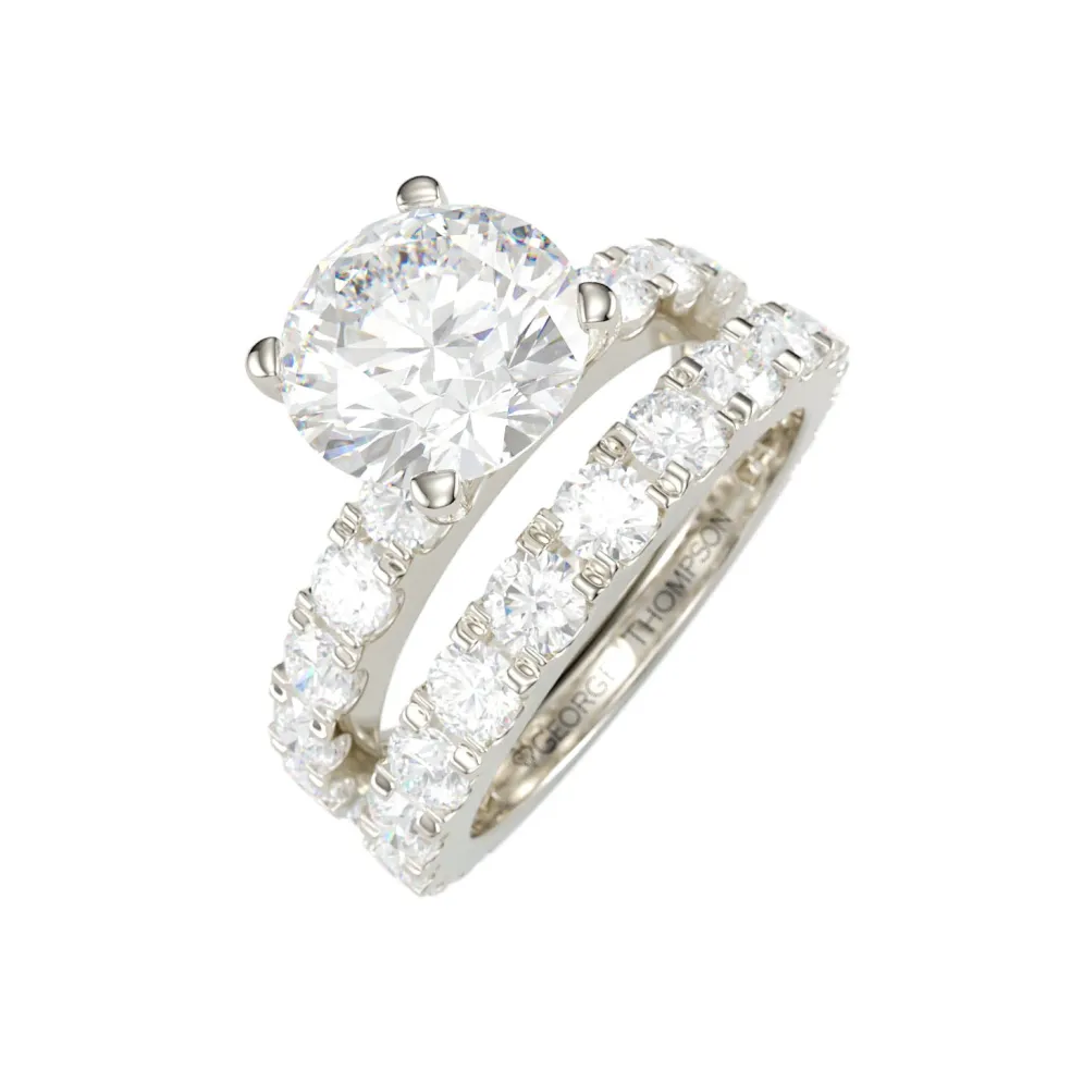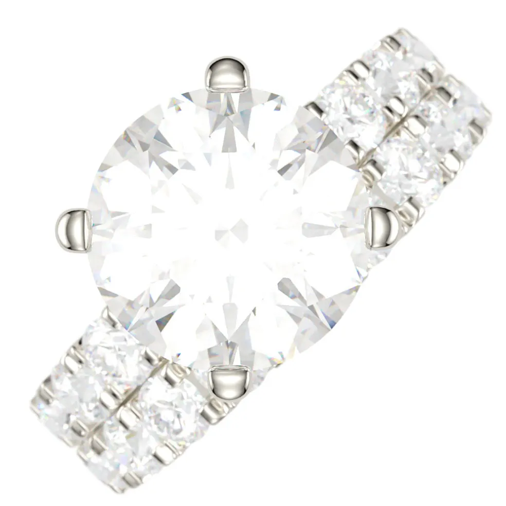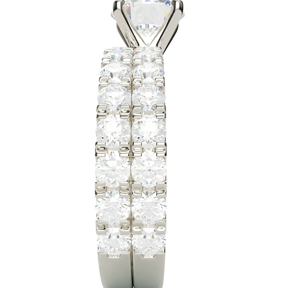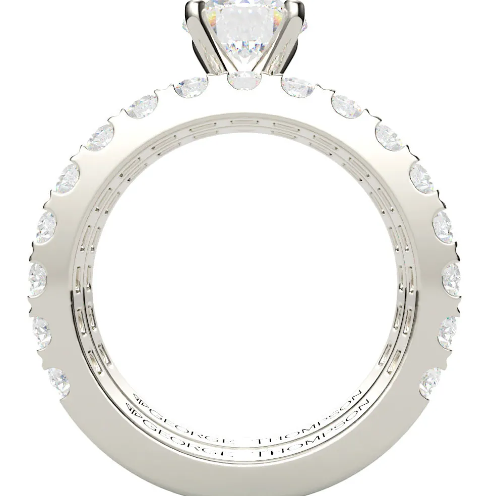 At its core, a captivating 1.00 carat round brilliant diamond—an embodiment of your love’s brilliance and a promise of forever. But the magic doesn’t stop there—33 delicate round diamonds on the sides, totaling 1.68 carats, create an exquisite ensemble that adds a touch of brilliance to your love story. So, embrace the allure of white gold and the enduring beauty of diamonds.Â
